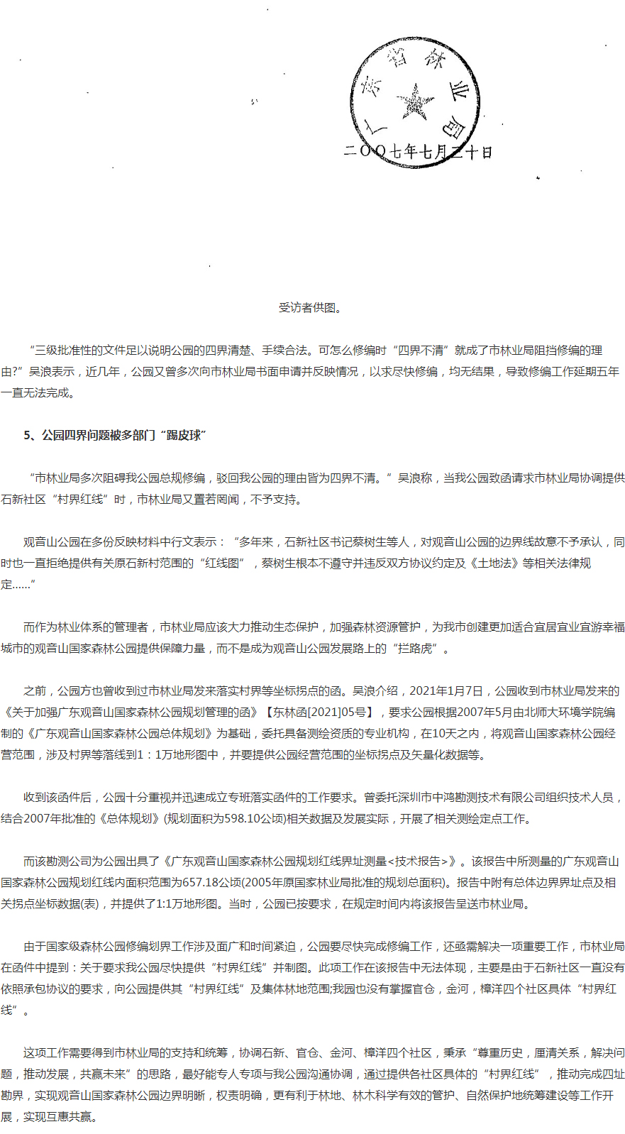 广东观音山国家森林公园起诉东莞市林业局的由来